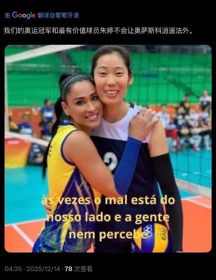 巴西球迷说,“我们的奥运冠军和最有价值球员朱婷不会让奥萨斯科逍遥法外”,太可爱了,既然打不过你就让把你据为己有吧,话说朱婷啥时候成你们的了,哈哈哈……