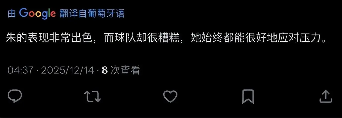 大多数巴西球迷,都肯定了朱婷在这场比赛中的突出表现,有人说“真正扛起比赛的是心狠手辣的朱”,也有人说“朱的表现非常出色,球队却很糟糕”还有人说“朱婷独自扛着方舟,避免了科内利亚诺的尴尬”。
