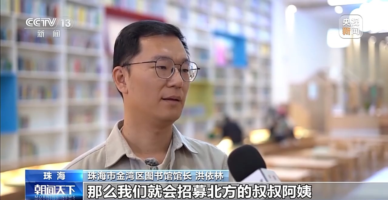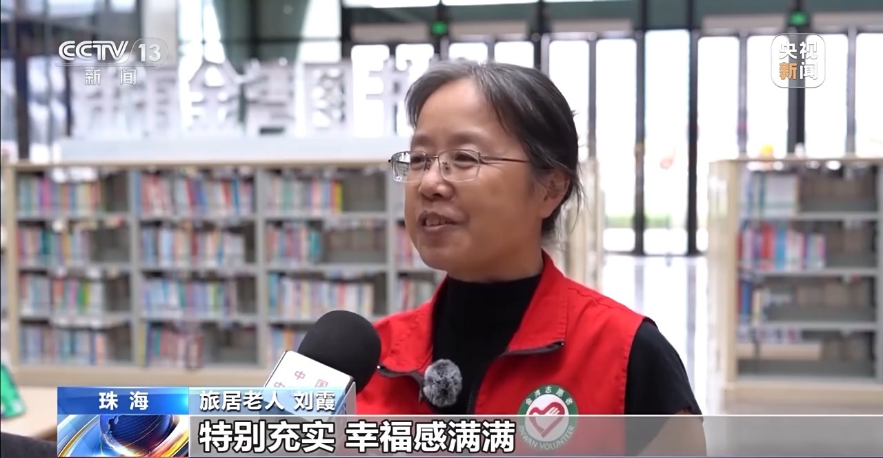 如果说社区文化中心是“热闹的聚集地”,那金湾区图书馆就是 “温馨的避风港”。每天上午,72岁的刘霞都会准时出现在这里,穿上红色的志愿者马甲,在书架间忙碌着。这位来自新疆的老人,如今是图书馆里小有名气的“老乡服务员”。